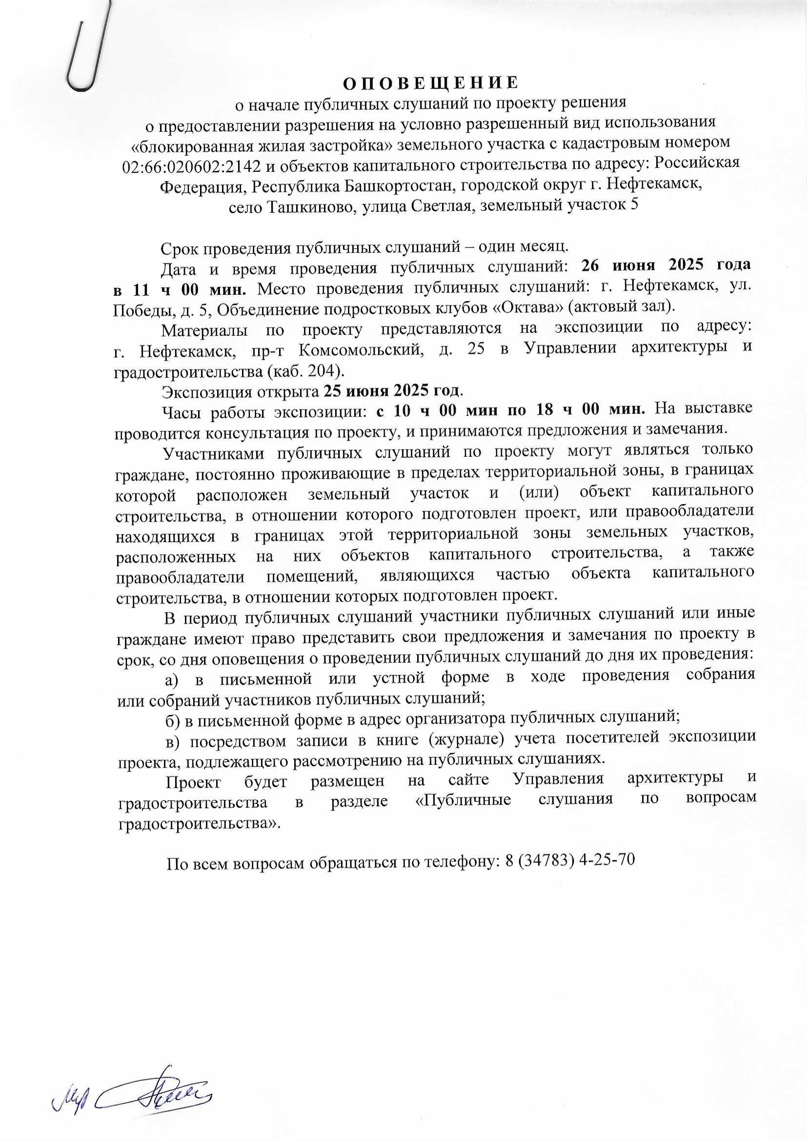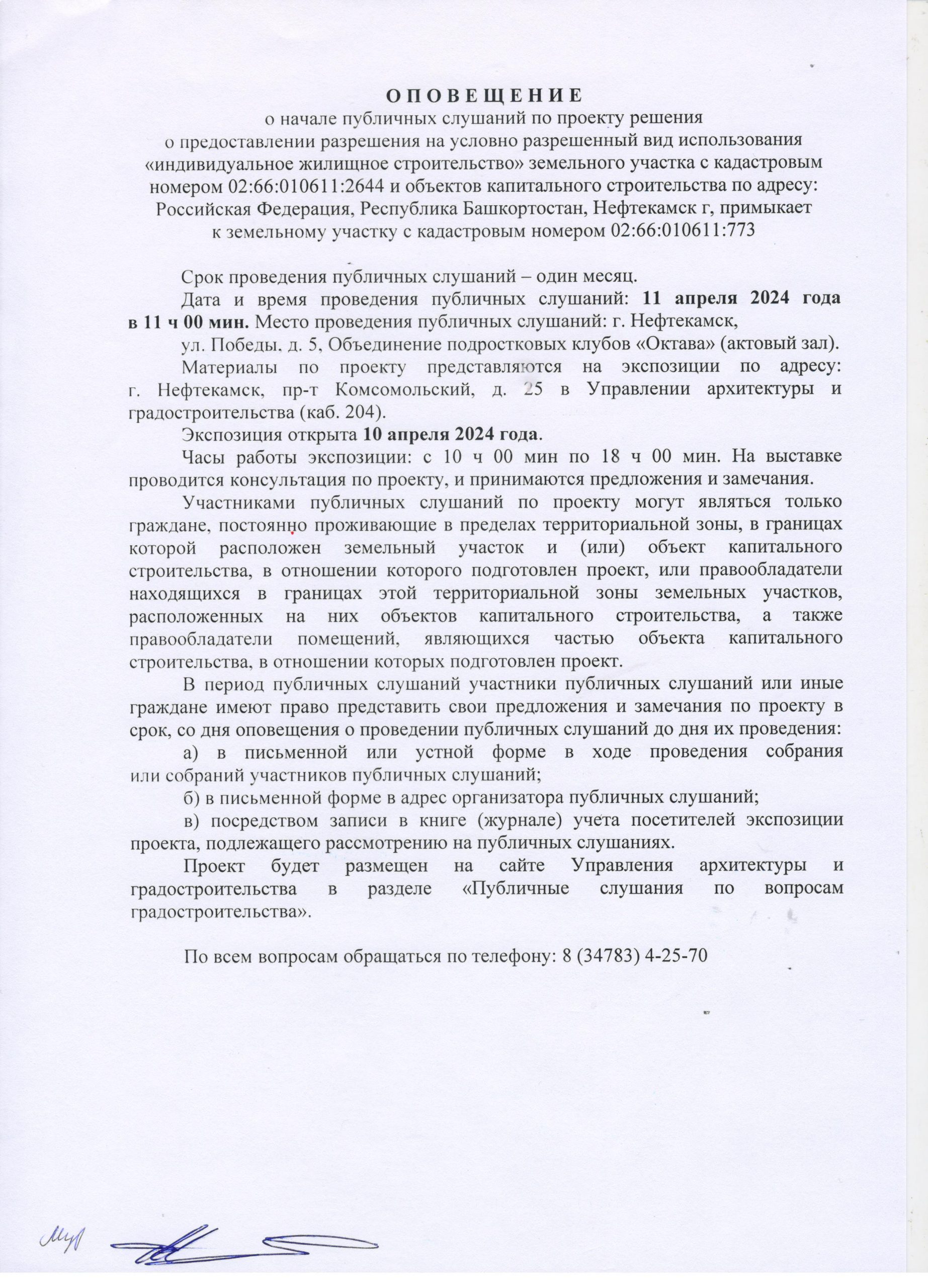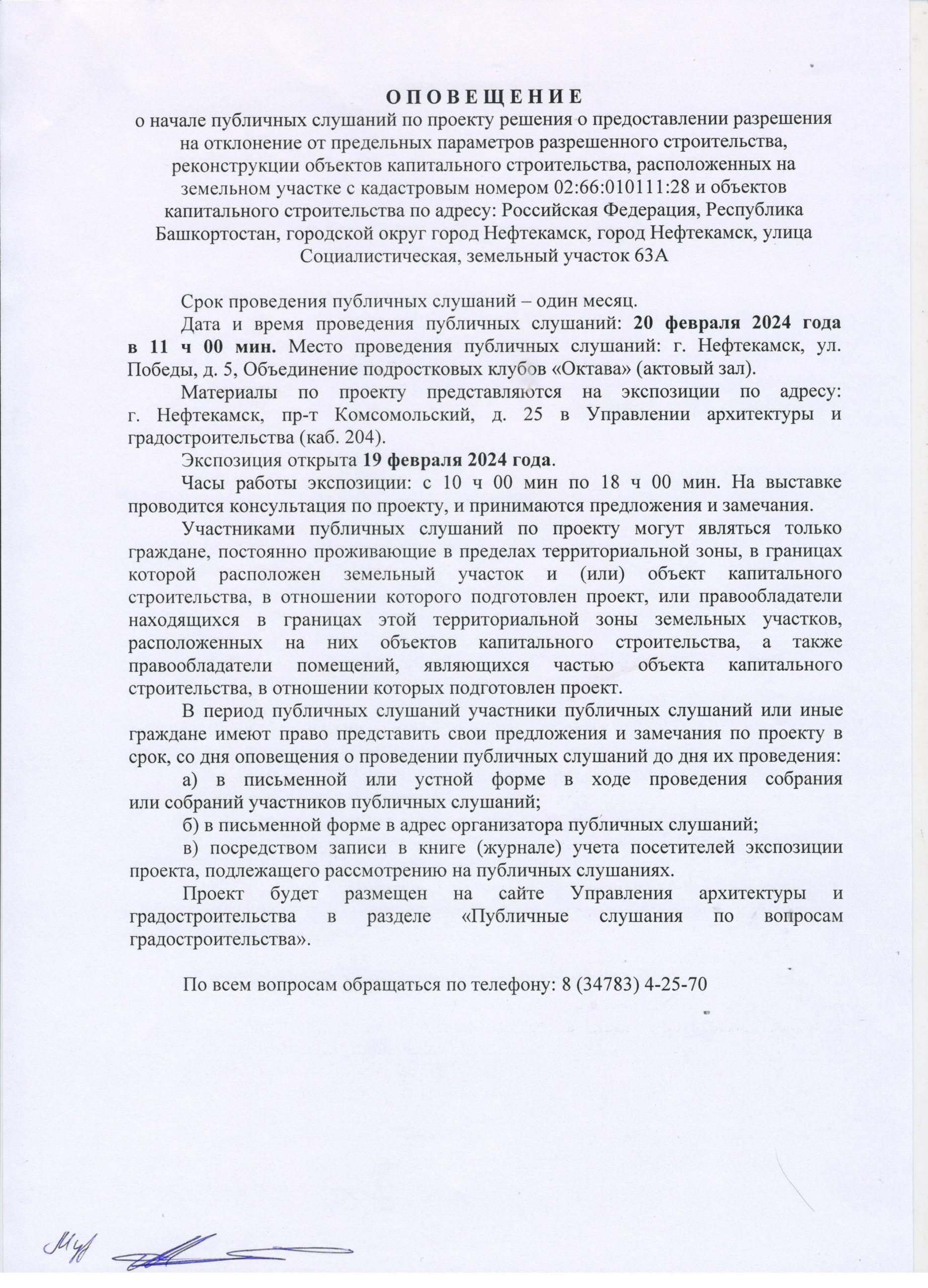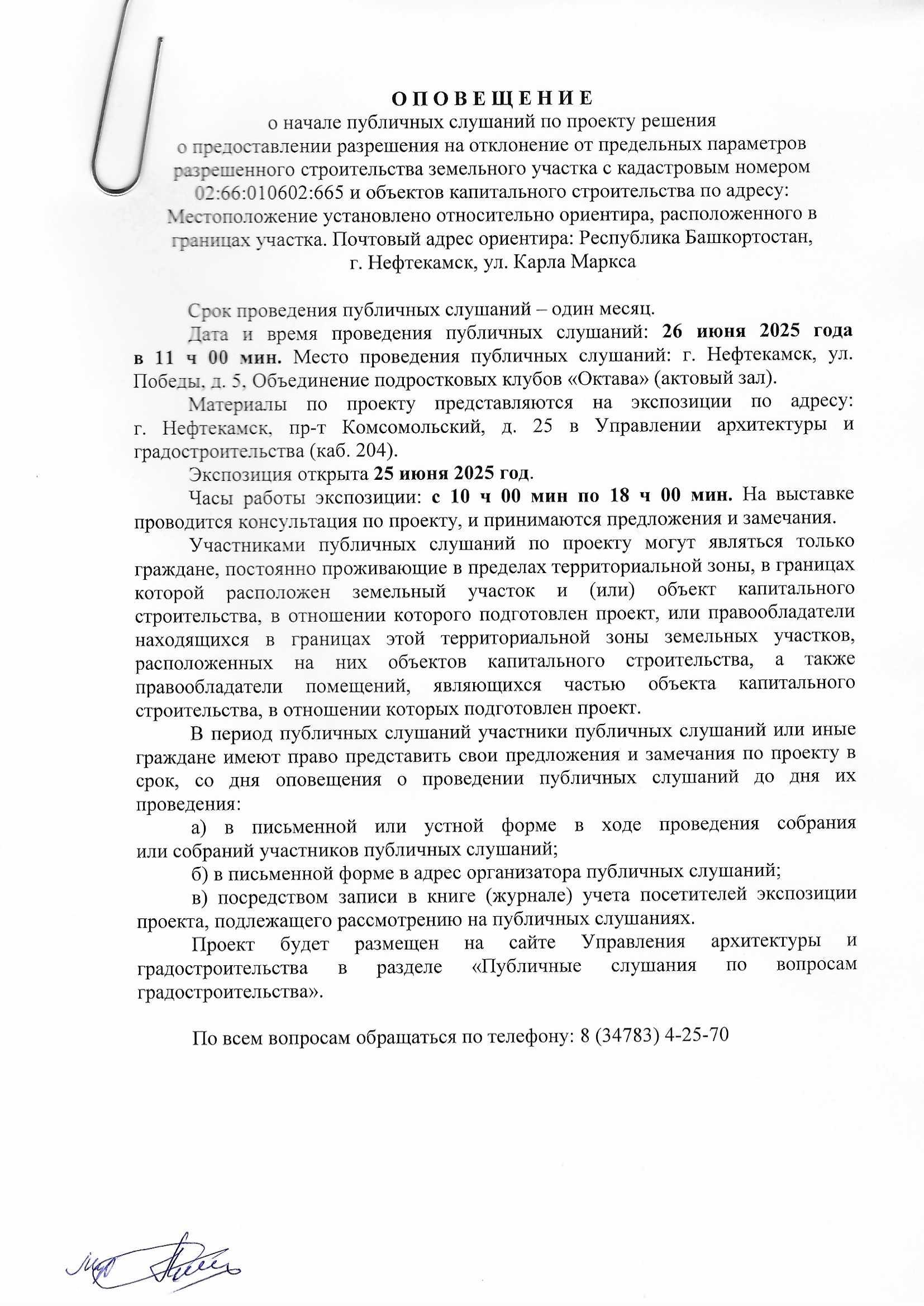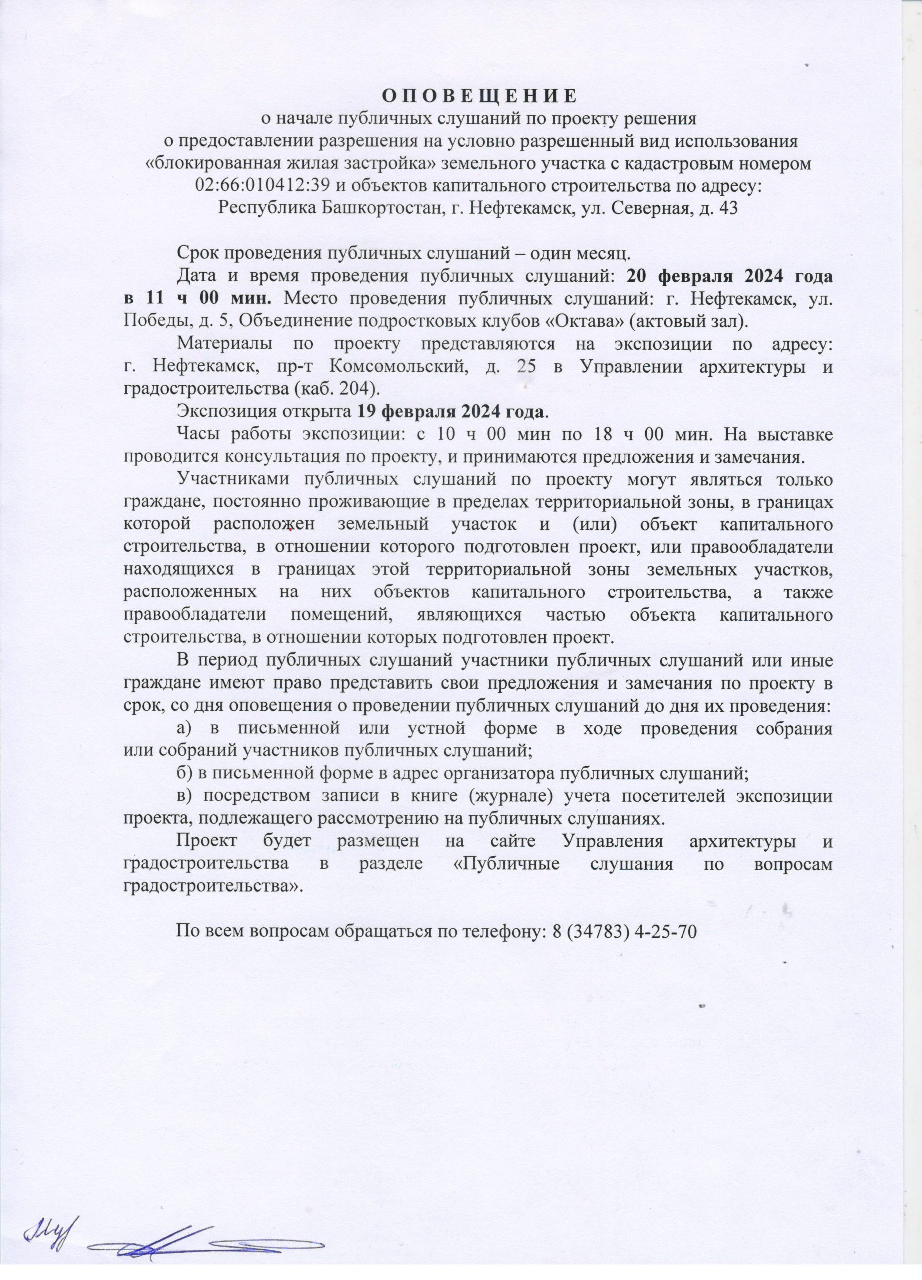 О П О В Е Щ Е Н И Е О начале публичных слушаний по проекту внесения изменений в проект планировки и проект межевания территории, ограниченной северной границей земельного участка телерадиовышки, по адресу: г. Нефтекамск, проспект Комсомольский, 92, улицей Юная и границей земельного участка гаражно-строительного кооператива «Весна»