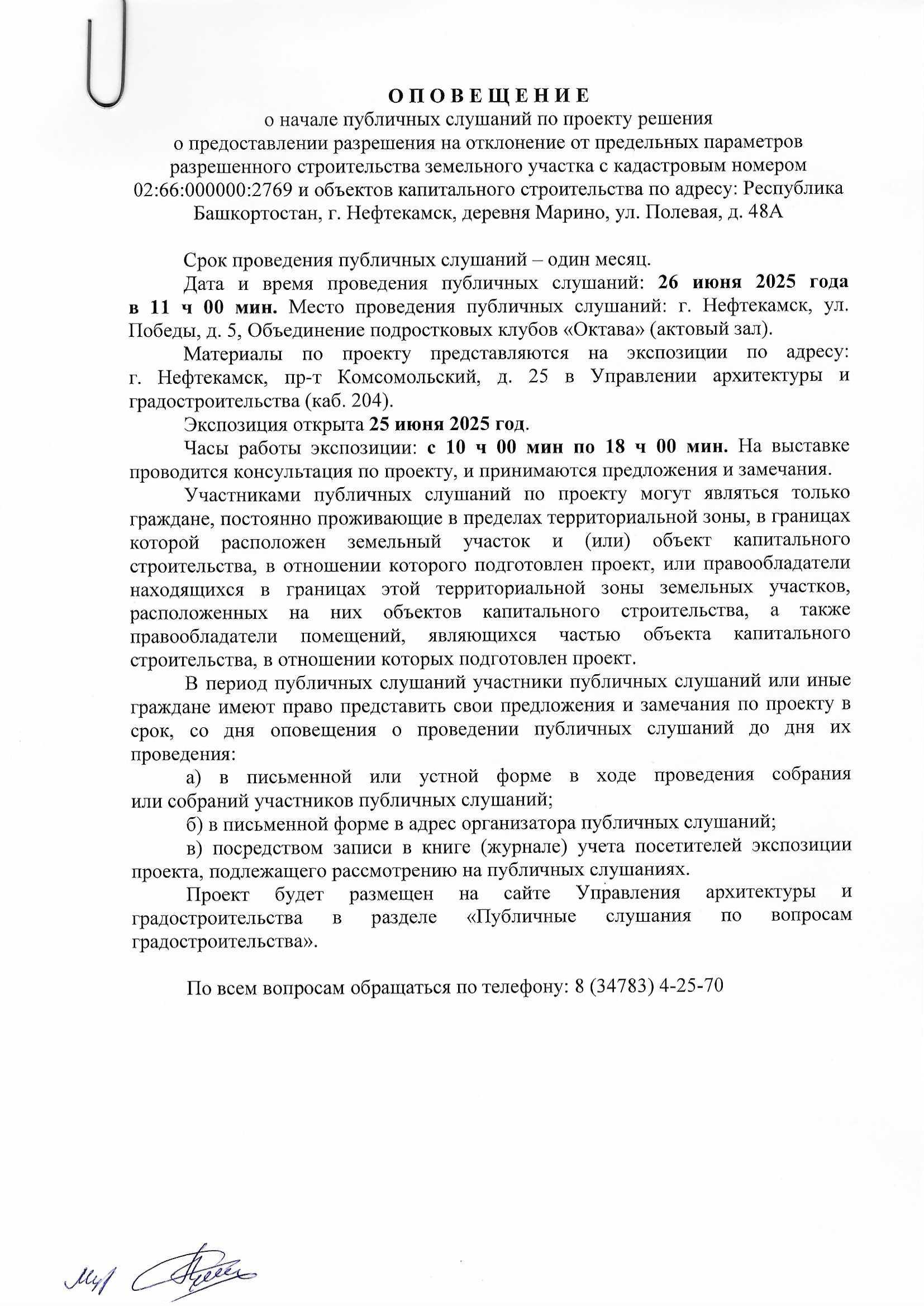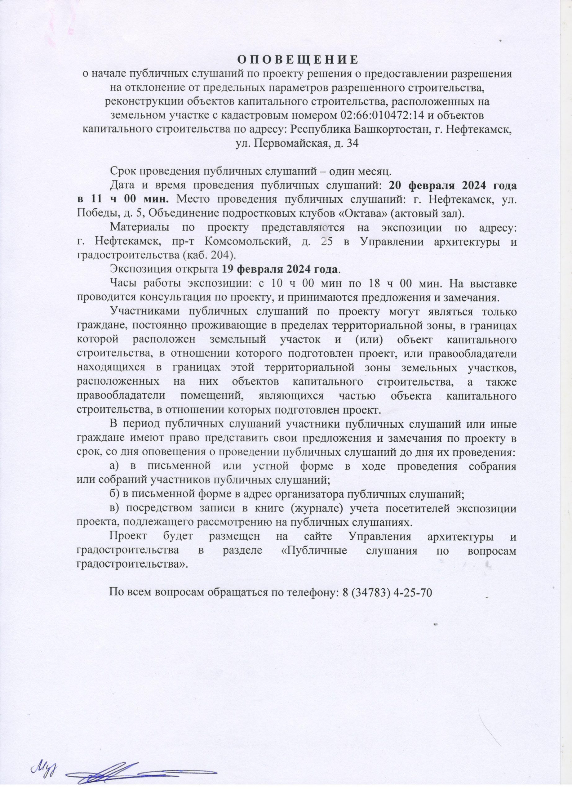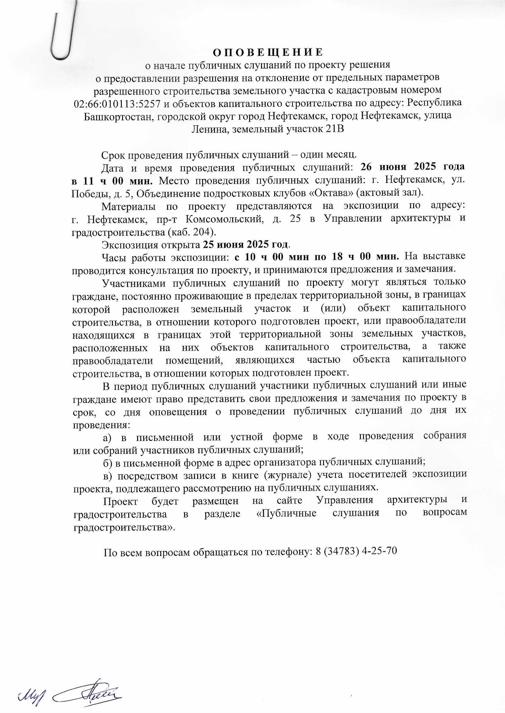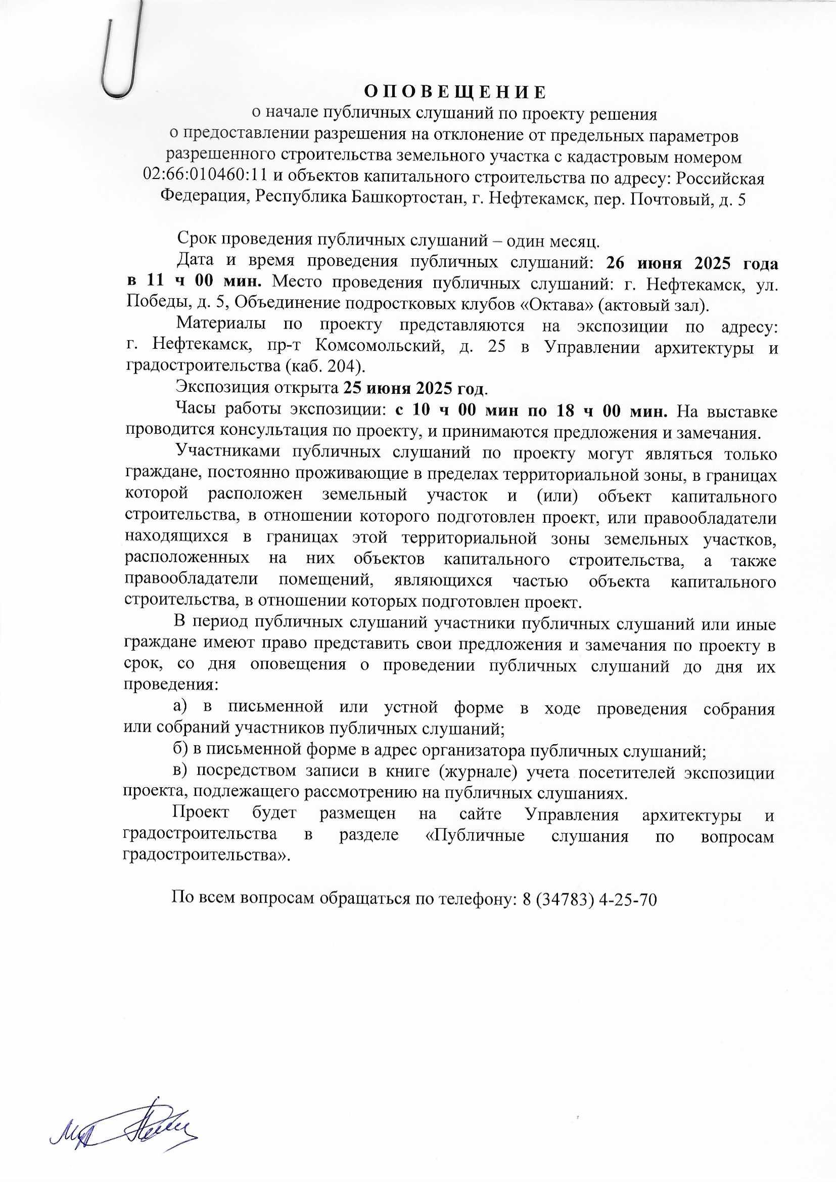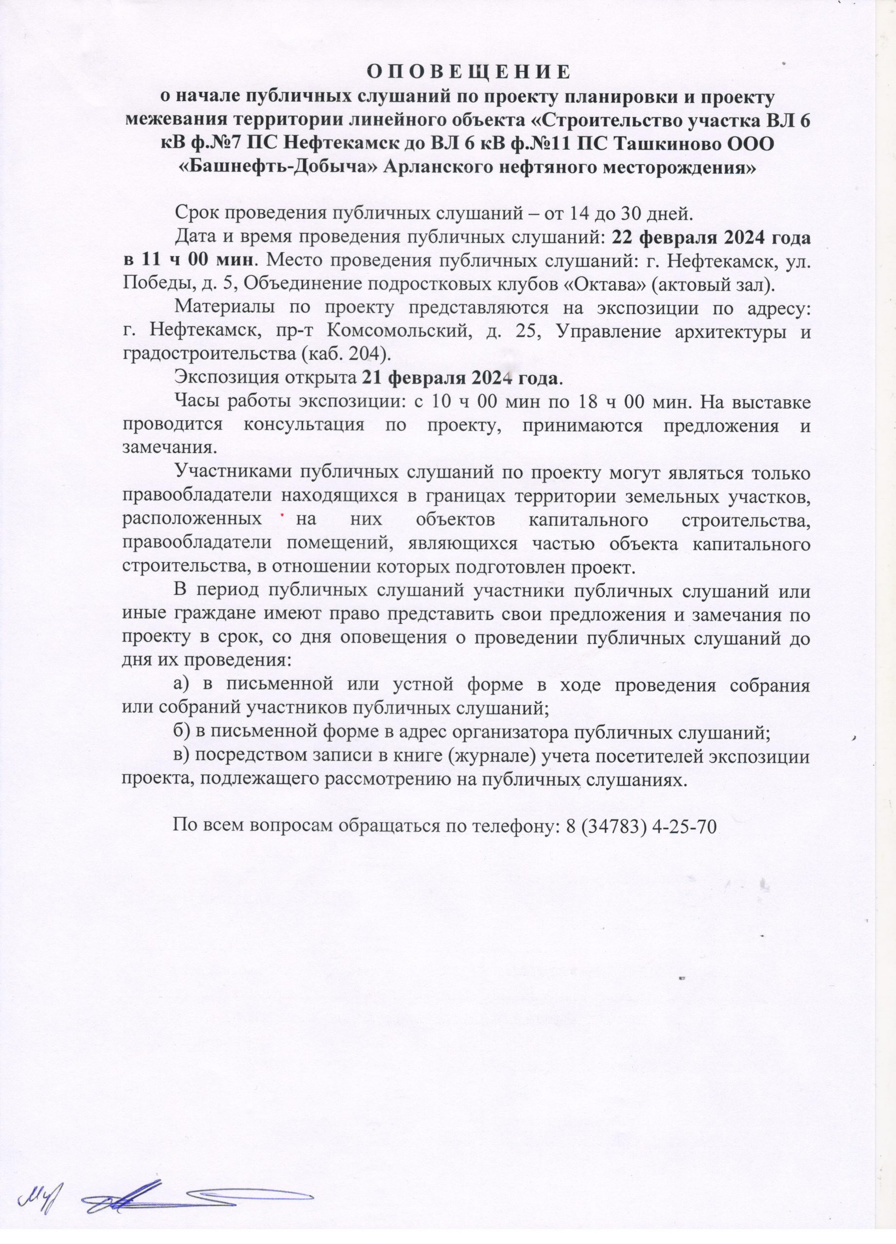 О П О В Е Щ Е Н И Е О начале публичных слушаний по проекту внесения изменений в проект планировки и проект межевания территории, ограниченной северной границей земельного участка телерадиовышки, по адресу: г. Нефтекамск, проспект Комсомольский, 92, улицей Юная и границей земельного участка гаражно-строительного кооператива «Весна»